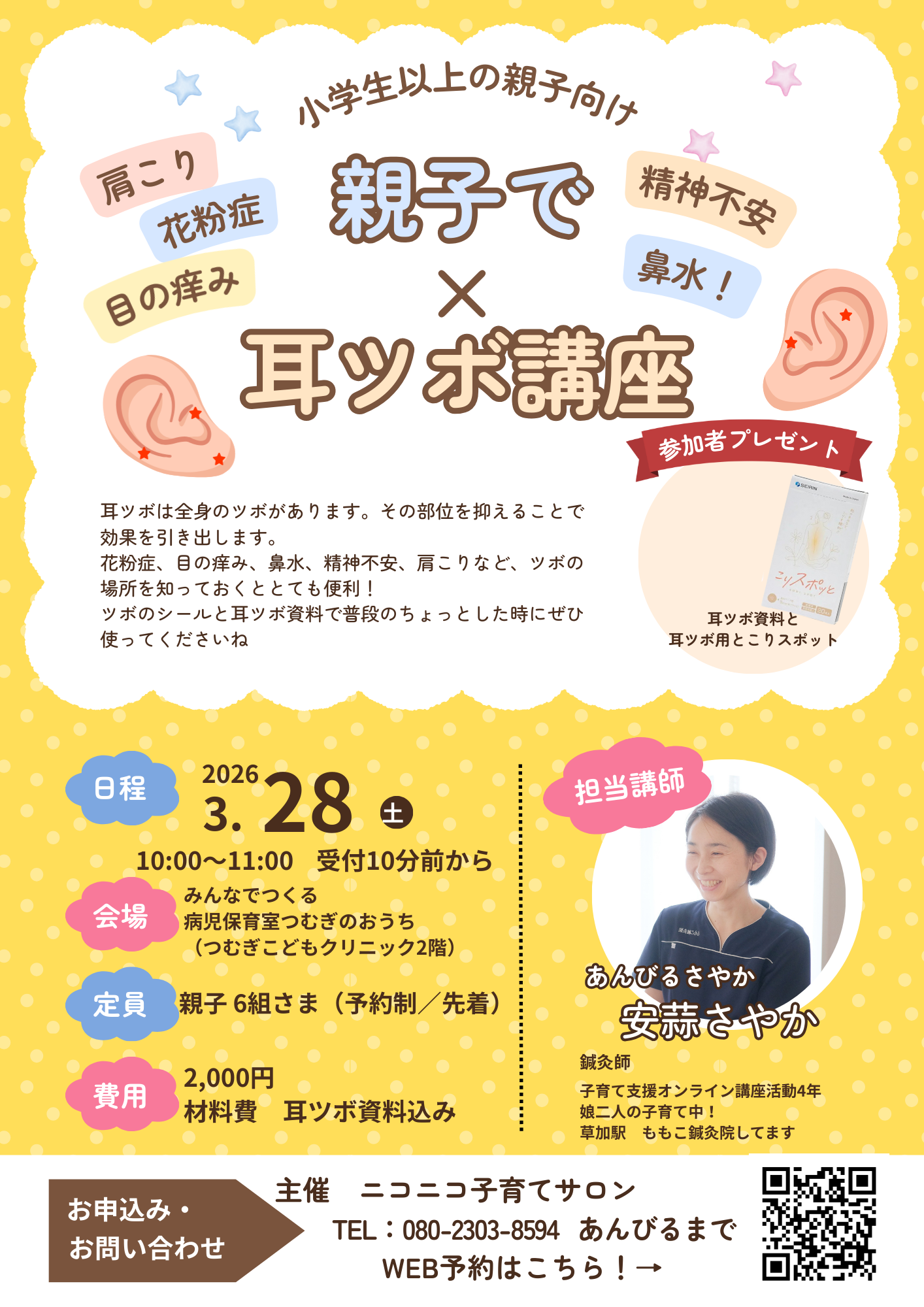 🌿 親子で耳ツボ講座 開催のお知らせ 🌿